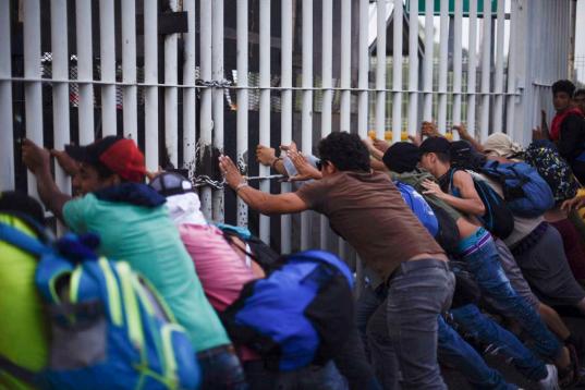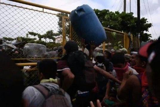 Miles de migrantes, en su mayoría hondureños, han roto la valla metálica que separa a Guatemala de México y después de un enfrentamiento con la policía, han cruzado corriendo y gritando a territorio mexicano. Un hondureño ha muerto, según una fuente humanitaria, a causa de los incidentes.