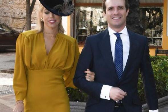 El presidente del PP, Pablo Casado, y su esposa, Isabel Torres, asistieron este sábado en Marbella a la boda de Ángel Acebes, el hijo del exministro 'popular' del mismo nombre, con Macarena Maza.