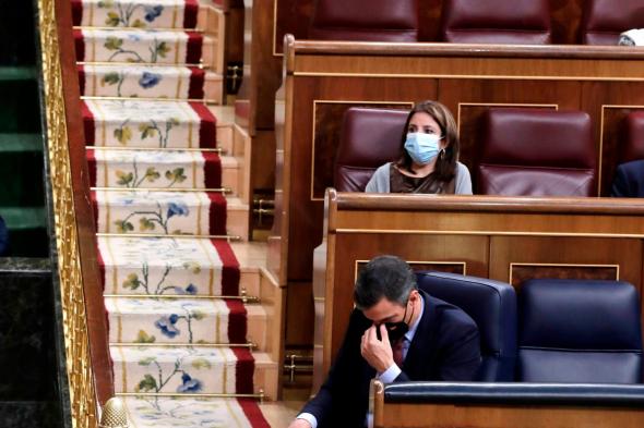 La ministra de Igualdad, Irene Montero, parece 'tirarse de los pelos'.