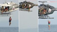 Esta vez, Encarni tenía un apoyo fundamental para conseguir lanzarse al mar: a Toñi. Parece mentira que fuese ésta quien no sabía nadar cuando participó en Splash: famosos al agua en 2013, porque se ha convertido durante el rato que han pasado en el helicóptero, que ha acabado prácticamente rozando el agua, en una verdadera cheerleader. Aunque el final no ha sido el mejor... Ups.