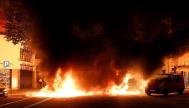 Fuego cerca de un furgón policial