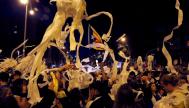 Lluvia de papel higiénico en la manifestación celebrada en Barcelona, a la que los CDR habían pedido acudir con rollos de papel