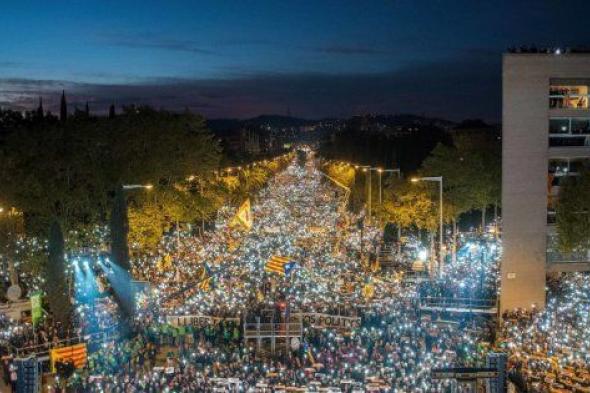 Convocadas por las organizaciones ANC y Òmnium Cultural, cuyos líderes, Jordi Sánchez y Jordi Cuixart, se encuentran en prisión, miles de personas han levantado sus teléfonos móviles y han iluminado la calle Marina de Barcelona, por donde ha transcurrido la marcha, en homenaje a los encarcelados.