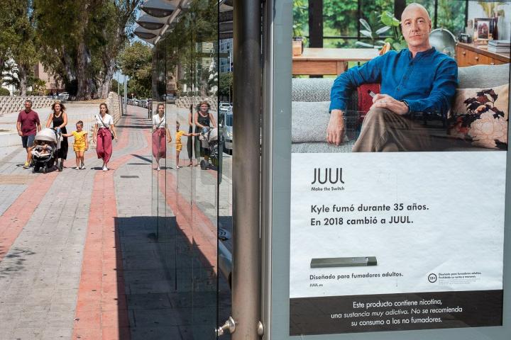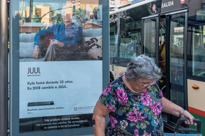 Primero fue blu, el vapeador de Altadis, inundando las marquesinas de toda España con una arriesgada campaña de publicidad que muestra personas de todas las edades en actitud de fumar. Ante la ausencia de una respuesta contundente por parte del Ministerio de Sanidad, Juul, el cigarrillo electrónico participado por Altria, matriz de Phillip Morris, se ha sumado a la fiesta con un anuncio en el que muestra a un fumador satisfecho de haberse pasado a este dispositivo.