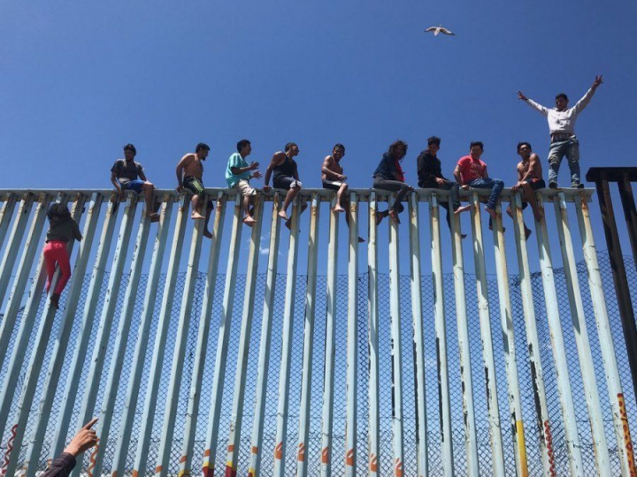 Tercer puesto. 'Refugee Caravan'. Miembros de la Caravana de Refugiados de 2017 escalan la valla fronteriza que divide a México y Estados Unidos para celebrar su llegada a Tijuana. Tijuana, Baja California, México. Con un iPhone 6SVerónica G. Cárdenas/iPhone Photography Awards