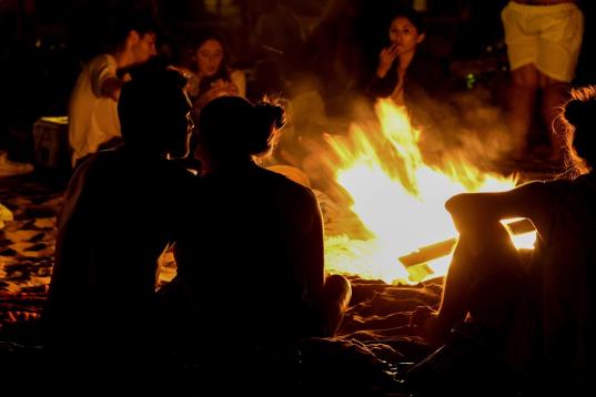 Un joven quema apuntes en una hoguera en la playa de Santander