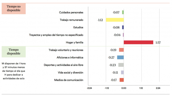 Las mujeres disponen de 1 hora y 37 menos menos de ocio que los hombres