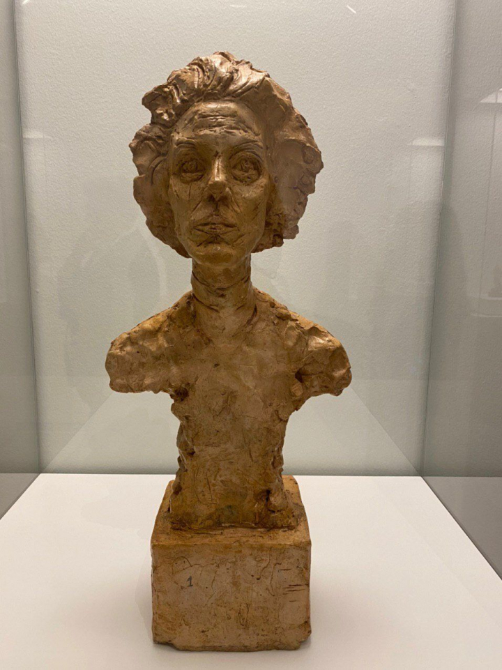 En una de las obras de Giacometti en la exposición vemos el busto de Annette Arm, a la que conoció en la Segunda Guerra Mundial cuando ella trabajaba en la Cruz Roja, y con la que posteriormente se casaría, en 1949. Es precisamente en estas obras en las que quiero detenerme, en estas mujeres siempre consideradas apenas como musas y que merecen una mención especial en la exposición. Fue Annette quien impulsó decisivamente en la vida de Giacometti el desarrollo técnico del cuerpo humano por parte del artista, frente a otros modelos que habían posado para él, debido a las largas horas que aguantaba Arm posando, y que permitieron a Giacometti encontrar el resultado deseado en sus esculturas. Además, como única heredera de los derechos de autoría de Giacometti cuando él fallece, Arm llevaría a cabo una intensa labor para catalogar todas las obras del artista, evitando falsificaciones y recogiendo toda la información en una base de datos fiable y segura. Fue su labor incansable hasta su muerte.