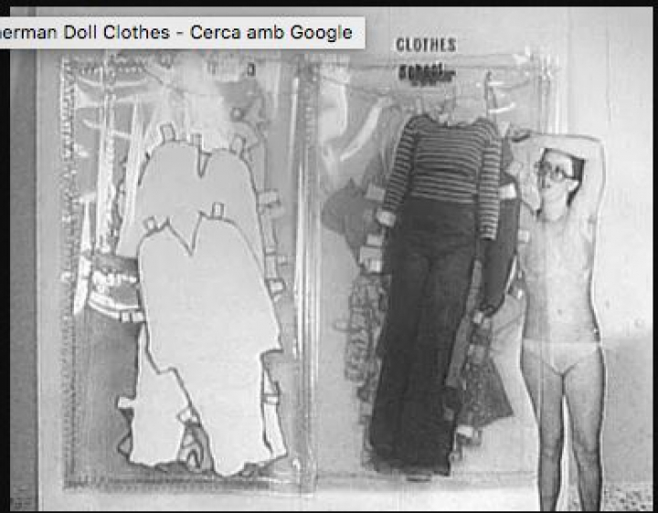 Un año más tarde, en 1975, la artista norteamericana Cindy Sherman siendo aún una estudiante de arte, creó la famosa pieza de animación Doll Clothes En el vídeo puede verse una muñeca, que es ella misma, dentro de un libro de “recortables”. La acción recrea el juego visual que se establece entre el acto de vestirse y el de escapar de los parámetros establecidos, entablando así una relación entre la muñeca y la mano que decide las normas de ese juego, una mano que presumiblemente también es la de Sherman.