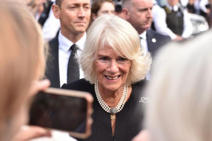 Antes de entrar, el rey paseó ante la puerta donde cientos de personas esperaban su llegada entre vítores y muestras de tristeza por el fallecimiento de la reina. Camilla, sabedora de lo crucial de ese momento, el primer acercamiento del rey al pueblo, se mantuvo en un segundo plano dejando todo el protagonismo a su marido sin borrar una tímida sonrisa de su cara.