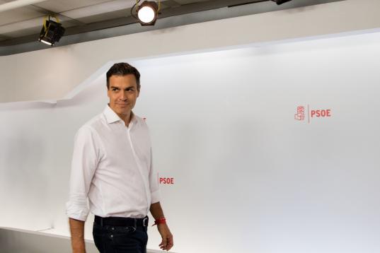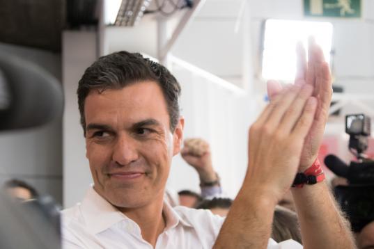 Mayo de 2017. Susana Díaz, Patxi López y Pedro Sánchez debaten en Ferraz antes de las primarias del PSOE que finalmente venció Sánchez.