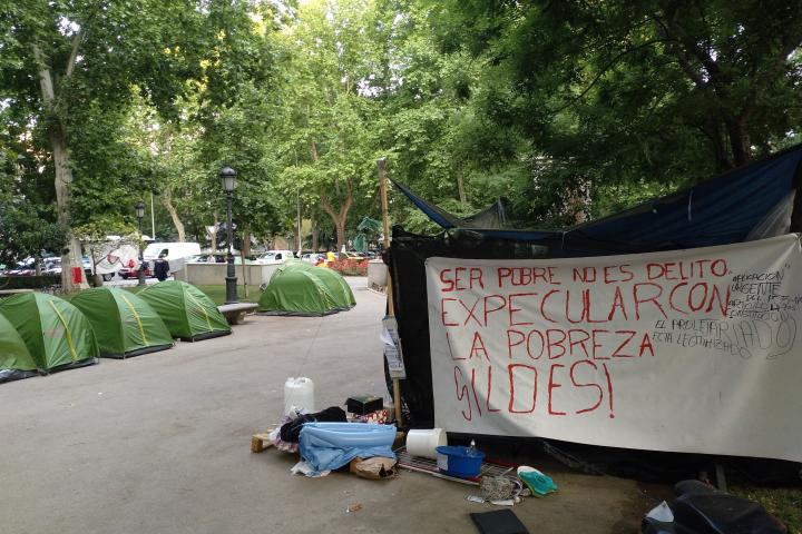 Si todavía sigue allí, cuando pases frente al Ministerio de Sanidad, Consumo y Bienestar Social, en el Paseo del Prado de Madrid, verás que hay un grupo de personas acampadas. Es la ‘Acampada por derechos. Nadie sin hogar’.