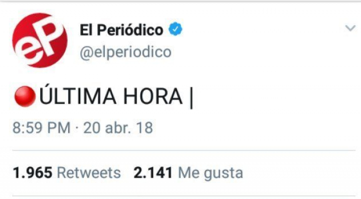 Un enigmático mensaje en Twitter del diario El Periódico ha desatado el ingenio de los usuarios de la red. "Última hora", anunciaba el tuit la noche de este viernes. Nada más.