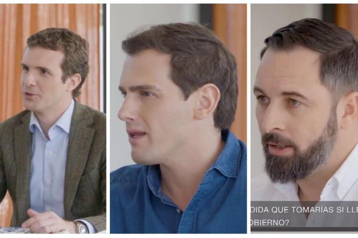 Pablo Casado (PP), Albert Rivera (Ciudadanos) y Santiago Abascal (Vox), los líderes de los tres partidos de la derecha, acudieron al programa (Pedro Sánchez y Pablo Iglesias rechazaron la invitación) y se sometieron a las nada incómodas preguntas del cantante.