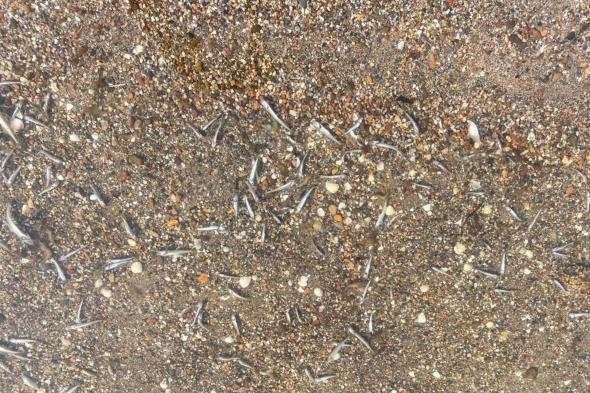 Una de las imágenes más impactantes se ve en un video grabado esta mañana en la playa de La Lengua de la Vaca en Los Nietos (Cartagena) donde se muestra a centenares de peces pequeños muertos en la orilla y otros que intentan sobrevivir.