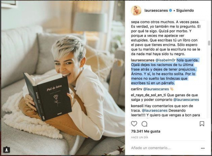 La publicación de Instagram en la que aparece junto a su libro se ha llenado de mensajes tanto positivos como negativos. Uno de ellos ha llamado especialmente la atención de Escanes: