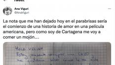 Le dejan en el parabrisas de su Twingo una nota para ponerle un marco y colgarla en la pared