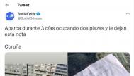 En esta ocasión no ha ocurrido nada de eso. La usuaria @AnaViguri ha compartido la nota que le han dejado en el parabrisas de su coche y es cuanto menos llamativa.