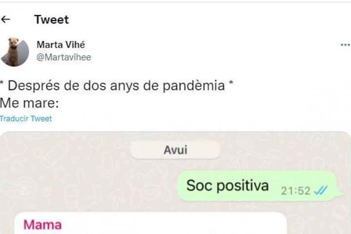 Es el caso de la usuaria de Twitter @Martavihee, que ha subido a esa red social un pantallazo de la conversación de WhatsApp que tuvo con su madre cuando le comunicó que se había infectado.