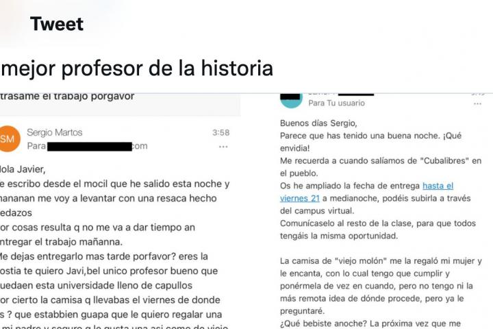 Es uno de los tuits más virales de las últimas horas en Twitter y no es para menos. La cuenta @ceciarmy, especializada en subir contenido de humor a redes sociales, ha publicado el mail que un alumno le mandó a su profesor estando de fiesta y la respuesta de este.
