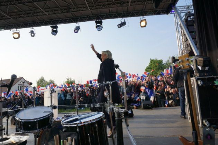Marine sigue retrasándose, alimentando el deseo de sus fans como si esto fuera un concierto de pop adolescente. Suenan las campanas de la iglesia. Los asistentes cantan La Marsellesa para hacer tiempo. Jóvenes y mayores, familias y grupos de amigos. Pijos y lumpens. Tiernos niños. Jóvenes de estética skin head. El populismo agita un cóctel social formidable. "¡Vamos a ganar, vamos a ganar!".