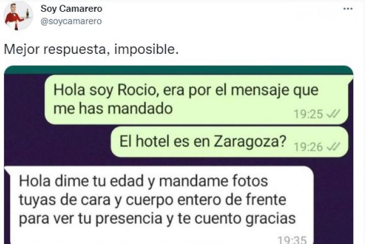 Esta vez, ha compartido la conversación que ha tenido por WhatsApp Rocío, una mujer que ha pedido trabajo en un hotel de Zaragoza, con el propietario del mismo.