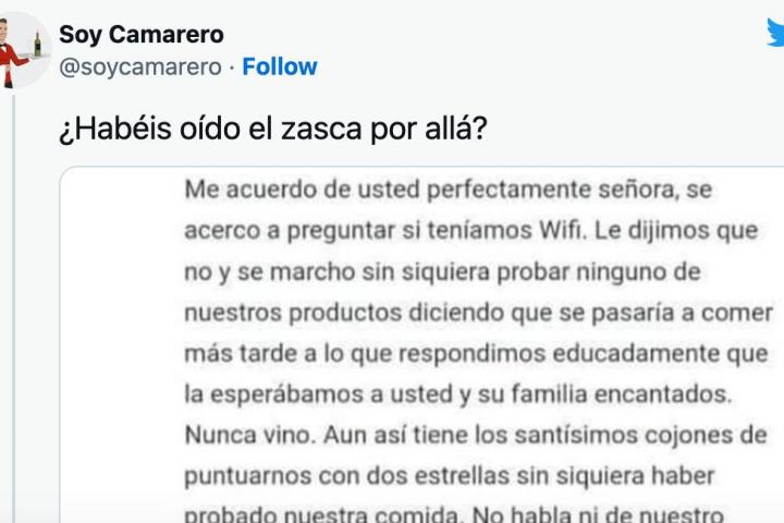 SoyCamarero ha compartido este mensaje en Twitter y se ha liado: lleva ya más de 1.200 retuits, entre compartidos y citados, y más de 13.000 ‘me gusta’.