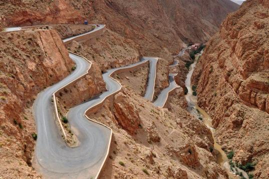 Garganta del río Dades entre las montañas del Atlas y la cordillera Anti Atlas.