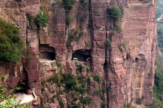 El túnel de Guoliang está tallado a lo largo del lado de y a través de una montaña en China. El túnel une la aldea de Guoliang en el exterior a través de las montañas de Taihang que están situadas en el Huixian, Xinxiang, provincia de He...
