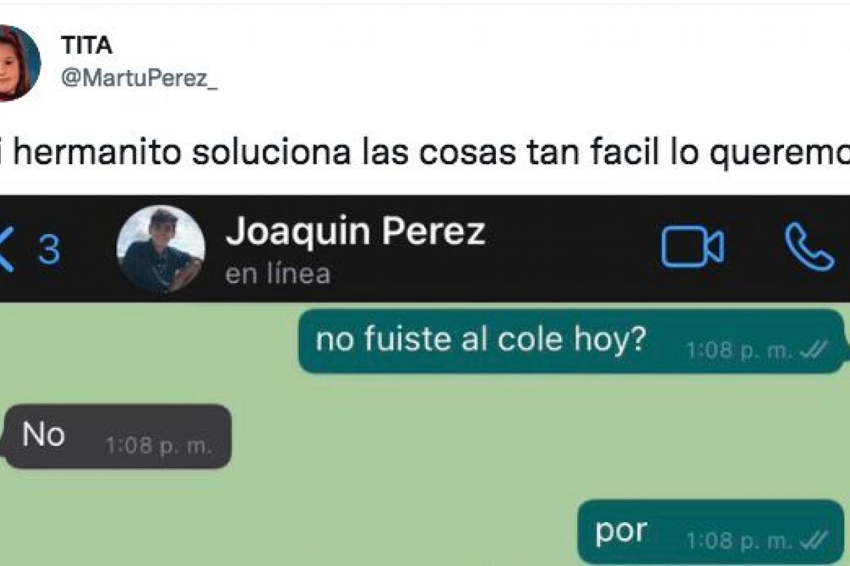Le pregunta a su hermano por qué no fue al colegio y su sincera respuesta revienta Twitter