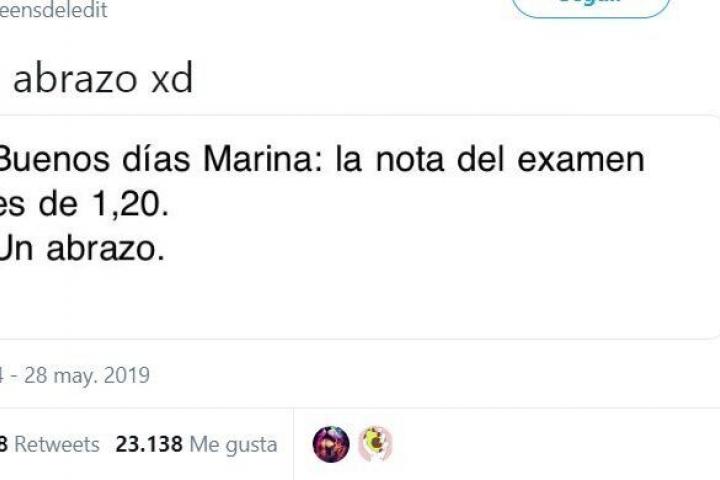 “Buenos días Marina: la nota del examen es 1,20”, reza el correo el electrónico que ha recibido de su profesor.