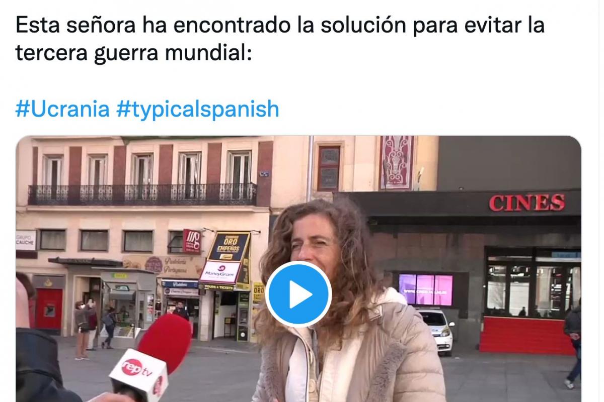 Es uno de los vídeos con más repercusión en Twitter de las últimas horas y no es para menos. Una periodista de Rep TV se ha ido hasta el centro de Madrid para preguntar a los ciudadanos por la invasión rusa de Ucrania y una mujer ha dejado un testimonio para la historia de la red social del pájaro azul.