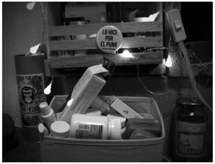 Afuera es mediodía. Su cuarto está sumergido en una penumbra en la que se mueve con naturalidad entre los botecitos de antinflamatorios. Junto a su cama hay un pequeño botiquín con Pregabalina, un fuerte anticonvulsionante; Fluoxetina, un antidepresivo para aliviar las sensaciones de dolor. Para casos más atormentadores, tiene opioides y extractos de marihuana.