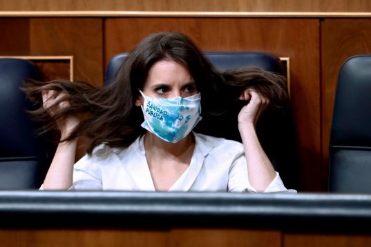 La ministra de Igualdad, Irene Montero, parece 'tirarse de los pelos'.