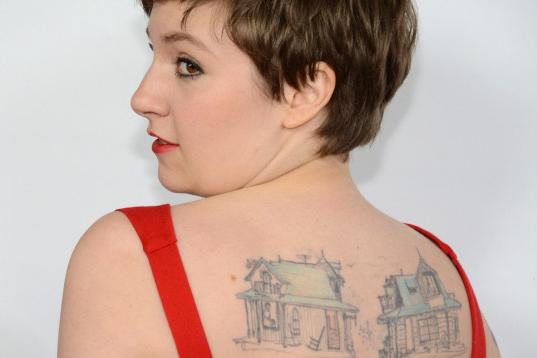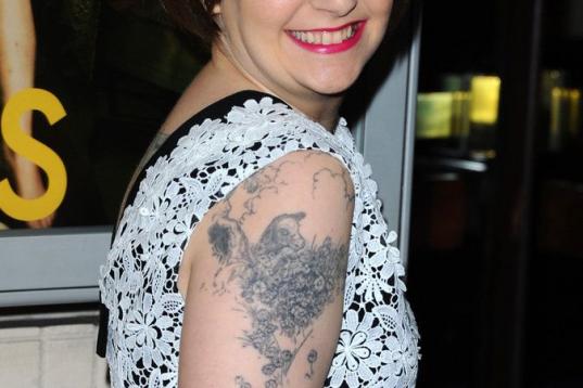 Lena Dunham shows off her tattoo at the premiere of "This Is 40" on Dec. 12, 2012, at Grauman's Chinese Theatre in Hollywood.