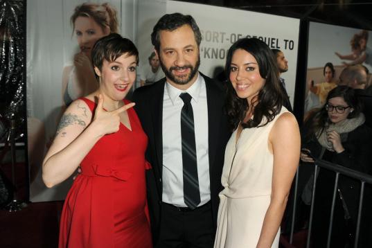 Lena Dunham, director Judd Apatow and actress Aubrey Plaza attend the premiere of "This Is 40" at Grauman's Chinese Theatre on Dec. 12, 2012, in Hollywood.