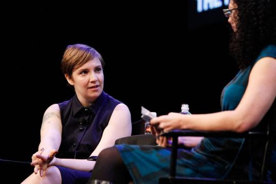 Lena Dunham speaks with moderator Emily Nussbaum at "In Coversation: Girl Power" for The New Yorker Festival at Acura at SIR Stage37 on Oct. 7, 2012, in New York City.
