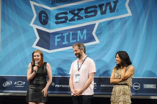 Lena Dunham, producer Judd Apatow and writer Jenni Konner speak onstage at a "Girls" Q&A on March 12, 2012, during the 2012 South By Southwest Music, Film + Interactive Festival in Austin, Texas.