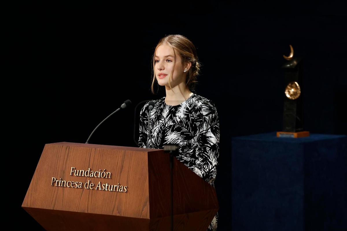 La heredera al trono ha presidido la entrega de los Premios Princesa de Asturias dirigiendo unas palabras en castellano e inglés a los premiados y autoridades congregadas en el Teatro Campoamor.