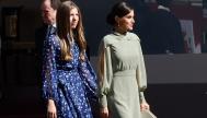 Letizia y Leonor también comparten el vestido estampado de Dándara que se agotó después de que la heredera lo luciera en los Teatros del Canal y que después la consorte tomó prestado para una reunión con Unicef.