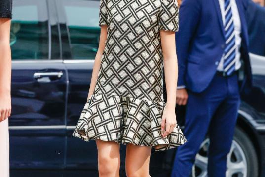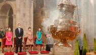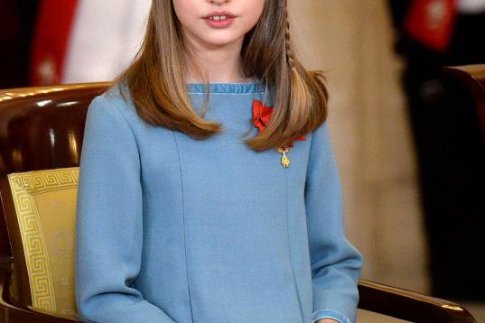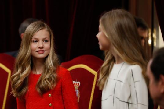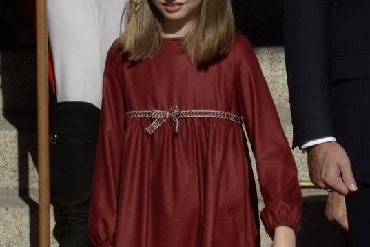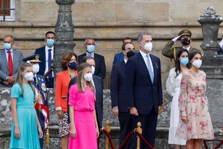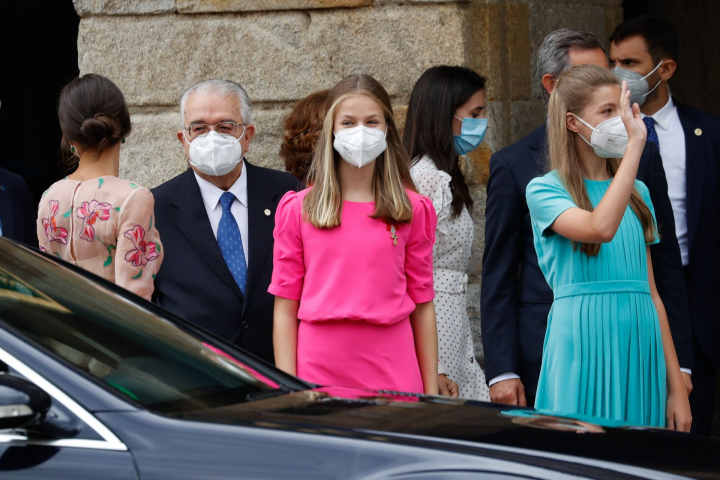 Las adolescentes eligieron dos vestidos en colores vibrantes que hacían frente a la mañana gris de la capital gallega. Sofía vistió un diseño turquesa más alejado de la modernidad de sus últimas apariciones y Leonor apostó por el fucsia, el color que ha reinado en el armario de su madre en los últimos meses.