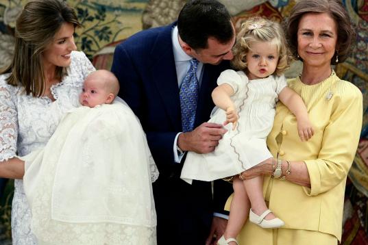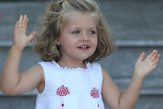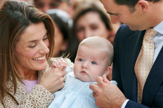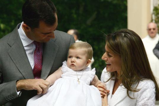 Leonor durante el bautizo de su hermana Sofía en julio de 2007.