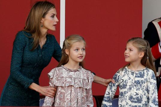 Letizia, Leonor y Sofía en el desfile de las Fuerzas Armadas del 12 de octubre de 2014.