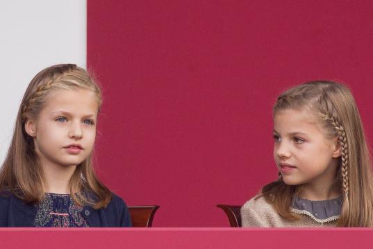Leonor y Sofía durante el desfile de las Fuerzas Armadas el 12 de octubre de 2015.