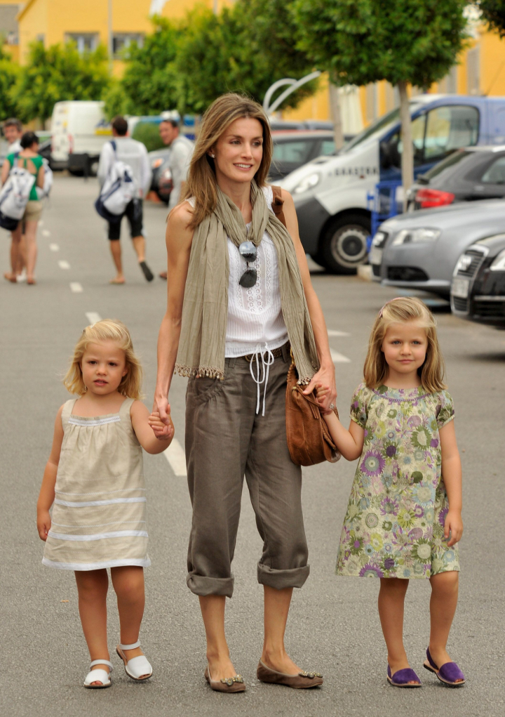 La reina Letizia, entonces princesa, con la princesa Leonor y la infanta Sofía en Mallorca el 3 de agosto de 2010.GETTY IMAGES