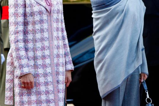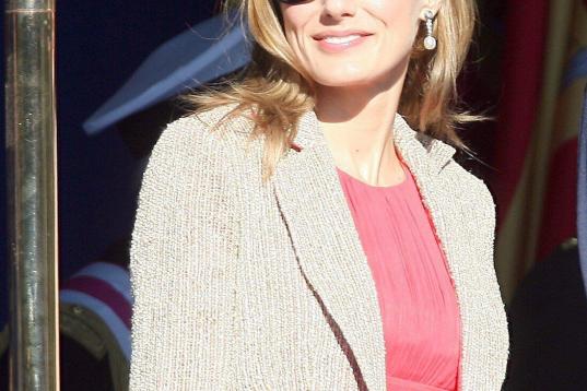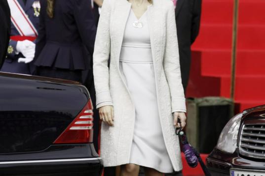 Su madre, la reina Letizia, rompió con el protocolo en 2010 cuando apostó por llevar pantalón vez de una falda. Felipe Varela firmaba el look que combinó con un chal gris y que muchos criticaron por ser demasiado desenfadado.