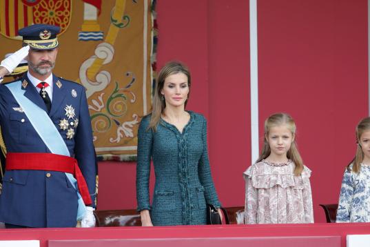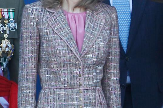 Todo han sido novedades en este atípico 12 de octubre. Todo, no, el conjunto de Felipe Varela elegido por la reina Letizia ya lo había lucido antes: en una visita oficial a Japón en abril de 2017 y en la entrega del Toisón de Oro a la princesa Leonor el 30 de enero de 2018.