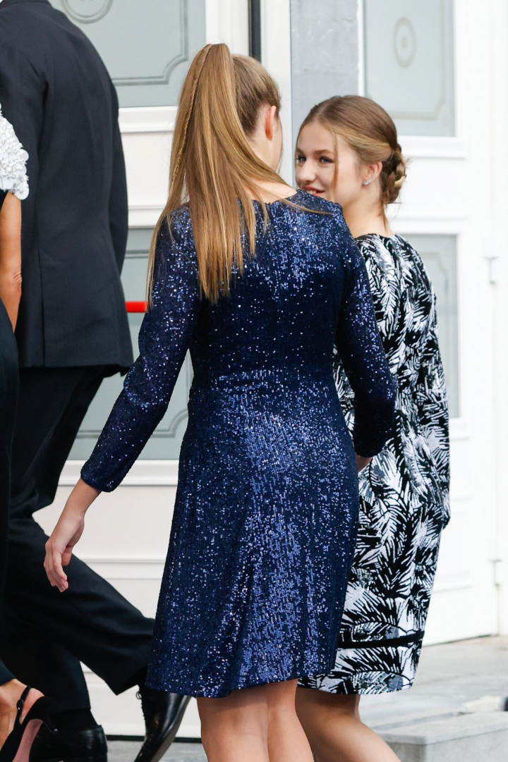 Si en las dos apariciones previas, las hermanas han lucido estilismos completamente diferentes, en el Teatro Campoamor las dos han coincidido en apostar por una de las tendencias de la temporada: las lentejuelas.