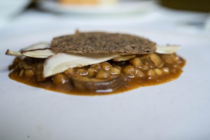 La oferta de Les Cols consta de dos menús, uno basado en los productos estacionales y otro más representativo de su huerto y de la cocina de proximidad que predican. En mi caso, terminé escogiendo el segundo, donde unos pases llenos de sensibilidad, en muchos casos sabores tenues y naturales y en otros casos intensos como el de su tomate de huerta (¡qué tomate!), enamoran al cliente. Creo que esta cocina tiene un sentido más intimo que mecánico y es realmente difícil encontrar restaurantes así, donde se eleva a arte la gastronomía, un arte efímero pero que el cliente interioriza.