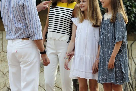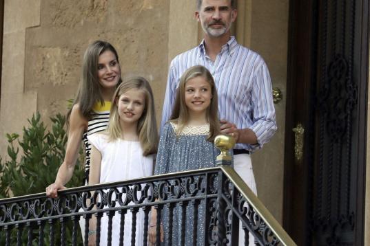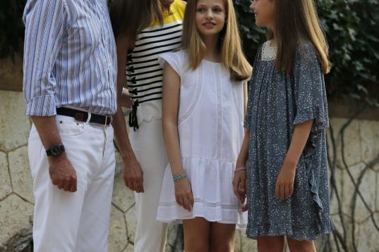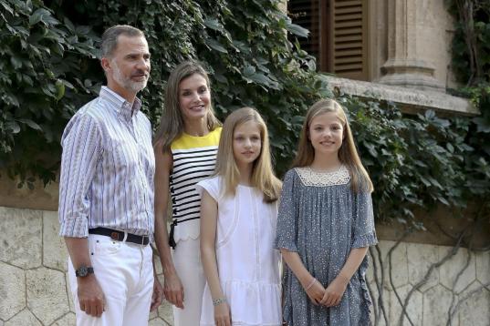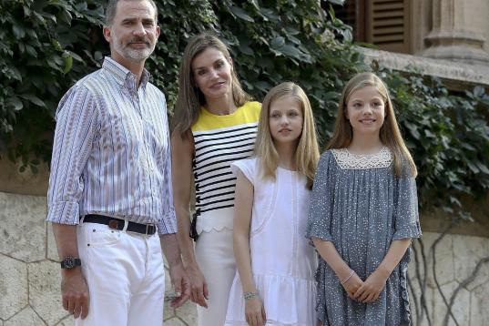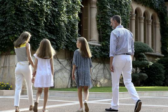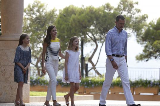 La reina Letizia y el rey Felipe VI con sus hijas Leonor y Sofía en el posado de verano en el palacio de Marivent, en Palma de Mallorca.